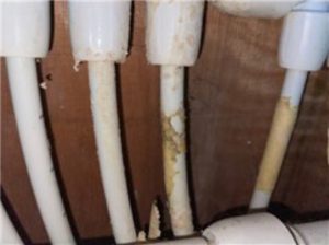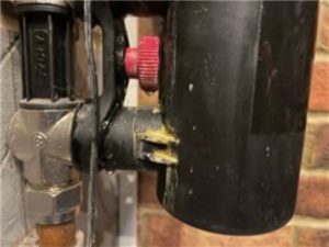 In contrast, the endoscope survey revealed erosion on the underfloor heating manifold behind the kitchen units. This contributed to the cause of the leak.